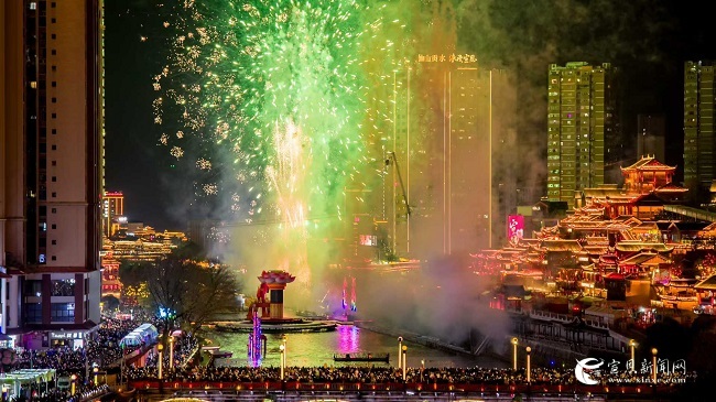 當(dāng)晚8點26分,隨著歡快的音樂奏響,第一束煙花直沖云霄,在夜幕中驟然綻放。剎那間,宣恩的夜空披上了夢幻彩衣,貢水河畔波光粼粼,將漫天絢爛的色彩完美倒映,現(xiàn)場氣氛瞬間被點燃,歡呼聲、驚嘆聲此起彼伏,五彩斑斕的光芒映照在眾人臉上,大家紛紛駐足仰望、舉機拍攝,定格下這璀璨瞬間。