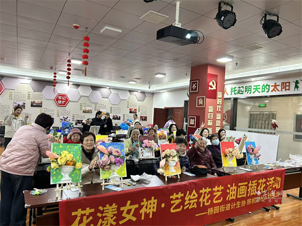 活動(dòng)現(xiàn)場(chǎng),長(zhǎng)桌上整齊擺放著畫(huà)布、油彩、花材等材料。啟晨便民服務(wù)中心專(zhuān)業(yè)老師細(xì)致講解油畫(huà)色彩搭配、筆觸運(yùn)用技巧,手把手指導(dǎo)花材修剪、造型搭配要領(lǐng),耐心解答大家的創(chuàng)作疑問(wèn)。居民們興致盎然,或蘸取油彩在畫(huà)布上揮灑創(chuàng)意,暈染出五彩斑斕的專(zhuān)屬畫(huà)作;或?qū)W⑿藜艋ㄖ?、搭配層次,一束束生機(jī)盎然的花藝作品接連成型,鄰里間相互交流心得、分享技巧,現(xiàn)場(chǎng)笑語(yǔ)不斷。