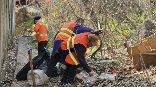 工作人員與志愿者穿梭于陡坡之上、溝壑之間,手持夾鉗、垃圾袋,逐點(diǎn)摸排、逐處清理,不放過任何一個(gè)隱蔽角落。從坡頂?shù)狡碌?,從石縫到樹叢,枯枝落葉、白色垃圾、廢棄雜物被一一清理出來,讓坡地逐漸顯露出原本的清爽模樣。對于清理出的各類垃圾,現(xiàn)場實(shí)行分類收集、閉環(huán)清運(yùn),確保整治見底見效,堅(jiān)決杜絕二次污染。