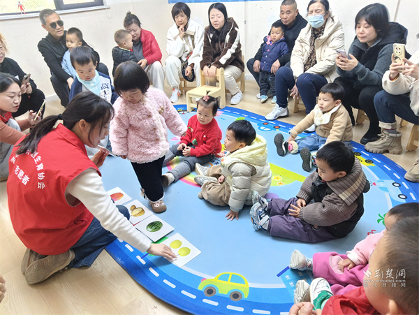 荊楚網(wǎng)(湖北日報網(wǎng))訊(通訊員 付玲)3月18日上午,武昌區(qū)紫陽街道歌笛湖社區(qū)聯(lián)合曼迪哆來咪兒童成長中心正式啟動2026年度親子早教系列課程。首場“語言&認(rèn)識——有趣的水果”主題活動,吸引12組0—3歲嬰幼兒家庭參與,家長與孩子在游戲中親密互動,共同學(xué)習(xí)感官啟蒙與語言引導(dǎo)方法。