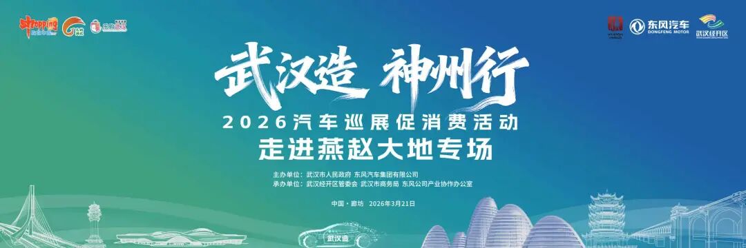 風(fēng)起車谷,智惠燕趙。3月21日,“武漢造 神州行”2026汽車巡展促消費活動·走進(jìn)燕趙大地專場將在河北省廊坊市舉行。這也是“武漢造”汽車巡展促消費活動首次走進(jìn)燕趙大地。