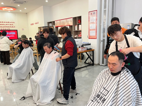 義診區(qū)旁,武昌“新興學院”天姿美發(fā)教學點的志愿者們支起簡易理發(fā)攤。他們手持剪刀,耐心詢問每一位騎手的發(fā)型偏好,細致滿足各式需求。正值“龍?zhí)ь^”理發(fā)的傳統吉日,短短半天時間,志愿者們便為40余名騎手換上了精神抖擻的新發(fā)型,讓大家在奔波忙碌中也能容光煥發(fā)。街道工作人員全程引導,維持秩序、遞上熱水,現場井然有序,暖意流淌。