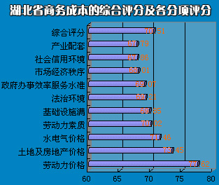 投資者對(duì)影響我省商務(wù)成本的十大因素的評(píng)價(jià)都較均衡,各項(xiàng)評(píng)分介于67.8-77之間,綜合評(píng)分70.51,正好位于基本滿(mǎn)意(60)與滿(mǎn)意(80)區(qū)間的中位。較去年同類(lèi)調(diào)查數(shù)據(jù)相比,提高3.5分。 ……………………………………………………………………
