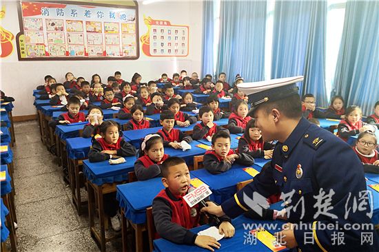 “起火物品是書桌,地址在恩施市……”在學(xué)習(xí)如何正確報(bào)火警環(huán)節(jié),一名同學(xué)拿著電話和消防員正在模擬報(bào)警。隨后,消防員用交流互動、寓教于樂的形式,通過深入淺出的語言,引導(dǎo)同學(xué)們了解火災(zāi)的危險(xiǎn)性、火災(zāi)預(yù)防措施、初期火災(zāi)的撲救方法和火場逃生自救技能等知識。