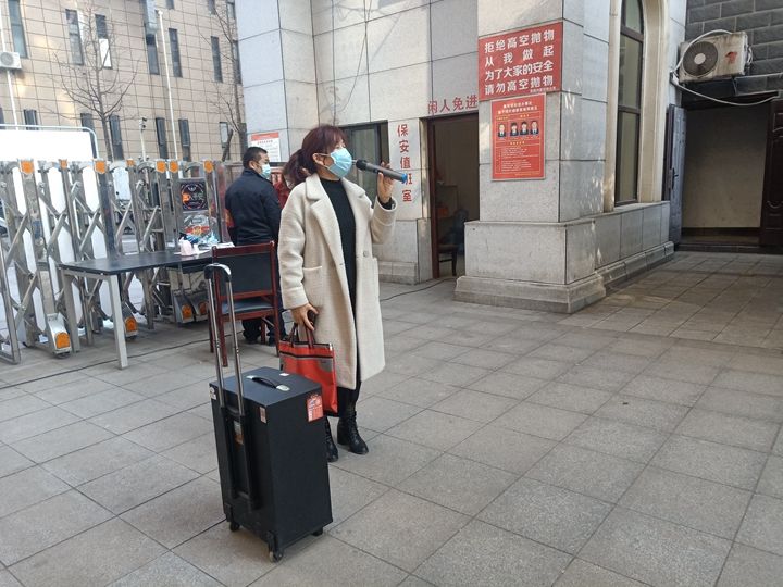 由于突然對小區(qū)進行封閉式防控,部分業(yè)主很是不習(xí)慣,總喜歡出門到小區(qū)溜達、曬太陽。為此,她專門拖了一個小音箱,坐到門衛(wèi)室,一有人出來,她就用話筒勸阻。