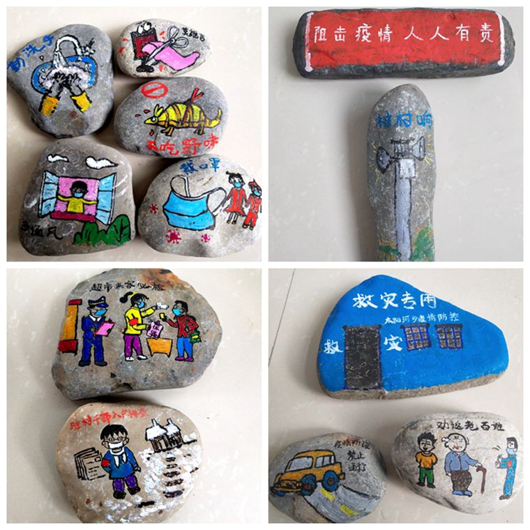 譚艷是恩施市太陽河鄉(xiāng)綜合文化服務(wù)中心的一名“三區(qū)”文化志愿者,平時喜歡畫畫和跳舞,疫情發(fā)生后一直在協(xié)助鄉(xiāng)指揮部開展疫情防控宣傳工作,在接到市文化和旅游局下發(fā)省文化和旅游廳的“關(guān)于進(jìn)一步做好抗擊疫情主題藝術(shù)作品創(chuàng)作的通知”后,她利用工作之余創(chuàng)作了一組全面反映基層抗疫工作的石頭簡筆畫。(楊紹斌 攝)