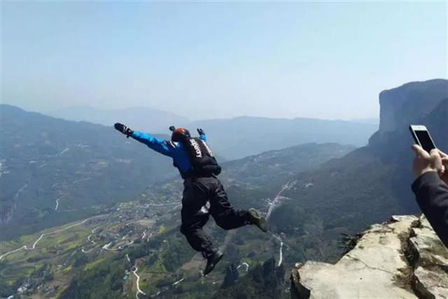 英國低空跳傘運動員成功挑戰(zhàn)恩施朝東巖