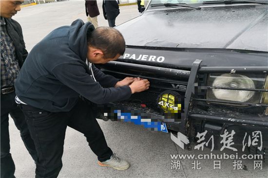 下午4時(shí)許,民警在咸豐服務(wù)區(qū)執(zhí)勤時(shí),發(fā)現(xiàn)一輛號(hào)牌為鄂QH***8“三菱版”黑色小型越野車(chē),經(jīng)檢查后發(fā)現(xiàn),該車(chē)輛車(chē)標(biāo)及外形等都和行駛證上面不相符,民警隨即將駕駛員及車(chē)輛帶回大隊(duì)調(diào)查。