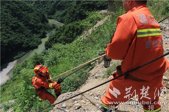 荊楚網(wǎng)客戶端—荊楚網(wǎng)消息(通訊員許國虎 劉子軒)5月23日中午,恩施大峽谷景區(qū)附近,一名驢友下至峽谷尋找手機被困。當?shù)叵谰仍藛T趕到現(xiàn)場經(jīng)過40多分鐘的營救,將被困男子營救到地面。