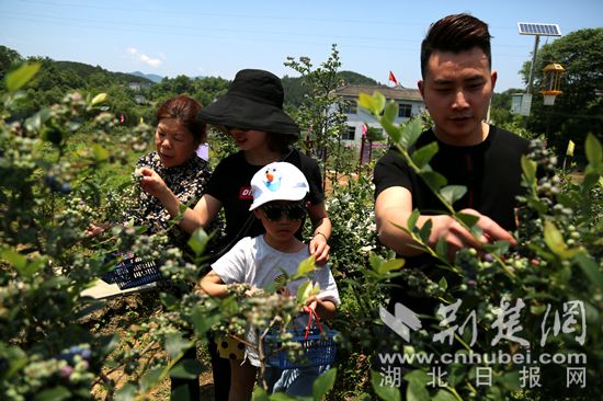 “宜昌、武漢、恩施等省內(nèi)外游客,一波接著一波來到這里,應(yīng)接不暇?!倍魇┦坪糜伍_發(fā)公司總經(jīng)理蔡善田介紹,藍(lán)莓學(xué)名越桔,建始三里石牌湖氣溫、光照、降水量等條件非常適宜藍(lán)莓的生長,通過23個藍(lán)莓品種在石牌村試種,最終確定出奧尼爾、布里吉塔等6個產(chǎn)量高、品種好、適合本地種植優(yōu)良品種,形成藍(lán)莓產(chǎn)業(yè)鏈?!?/p>