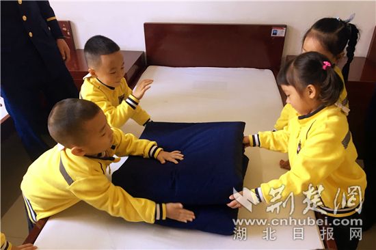 隨后,小朋友們來到了戰(zhàn)斗班宿舍,瞬間被一個(gè)個(gè)“豆腐塊”般的“被褥塊”給吸引住了。為了滿足萌娃們的好奇心,消防員專門演示了“豆腐塊”的形成過程,并讓小朋友們自己動(dòng)手疊“豆腐塊”,在消防員的引導(dǎo)下,不一會(huì)兒,一床方方正正的被子就魔術(shù)般的疊好了,摸著“豆腐塊”被子,小朋友們紛紛表示要向消防員叔叔做事認(rèn)真嚴(yán)謹(jǐn)?shù)膽B(tài)度學(xué)習(xí)。