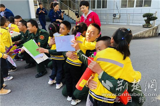 小朋友們紛紛為消防員送上自己親手做的小禮物。通訊員 供圖