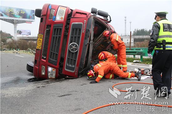 荊楚網(wǎng)客戶端—荊楚網(wǎng)消息(通訊員柯胤君)2020年1月1日9時20分,,一輛掛車行駛至利萬高速萬州往利川方向與滬渝高速交匯處時,因操作不當(dāng),沖出圍欄后發(fā)生側(cè)翻,駕駛員被困。事故發(fā)生后,消防員迅速趕到現(xiàn)場處置,成功救出被困司機(jī)。