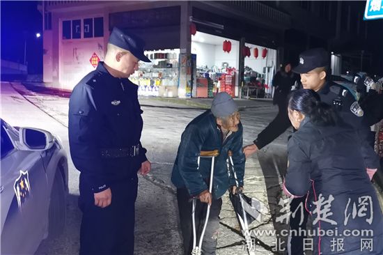 “警察同志,在長樂村22組發(fā)現(xiàn)一位老奶奶,拄著雙拐在路上走著,疑似走失。我們挽留不住,老人現(xiàn)正執(zhí)意朝長樂集鎮(zhèn)走去。”12月31日晚8時許,南坪派出所接到轄區(qū)群眾報警后,值班民警白緯立即帶領(lǐng)4名警力迅速趕往長樂村。