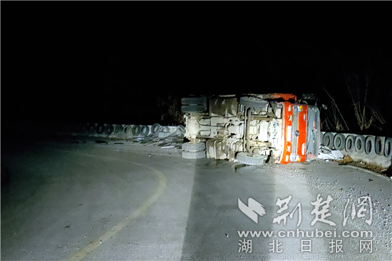 荊楚網(wǎng)客戶端—荊楚網(wǎng)消息(通訊員曾志強(qiáng) 劉磊)1月16日晚,在S339省道建始縣景陽鎮(zhèn)一處長下坡急彎路段,一輛滿載貨物的貨車突然側(cè)翻,所幸被防撞墻攔住避免墜落20余米的高坎,司機(jī)僅受輕微傷。