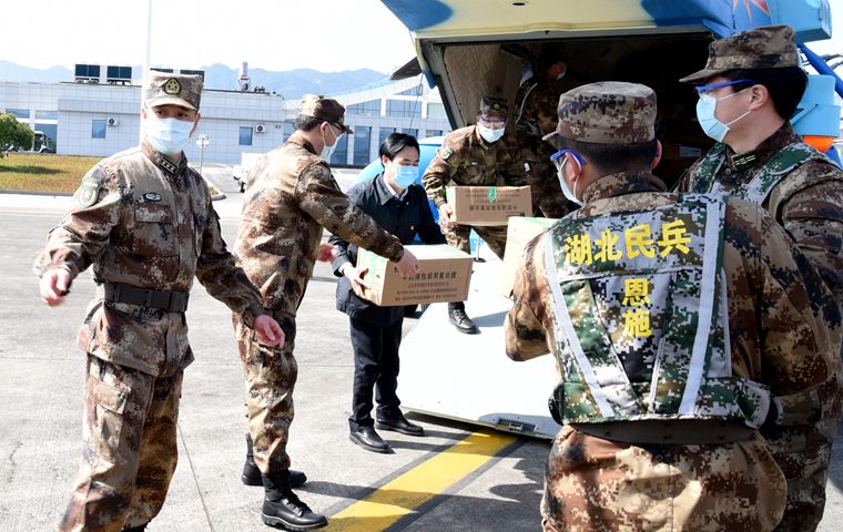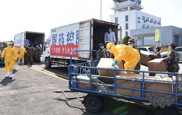 2月17日,一批緊急醫(yī)用物資由中部戰(zhàn)區(qū)湖北省軍區(qū)軍用直升機(jī)運(yùn)抵恩施。