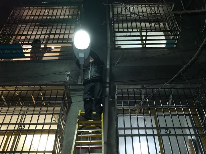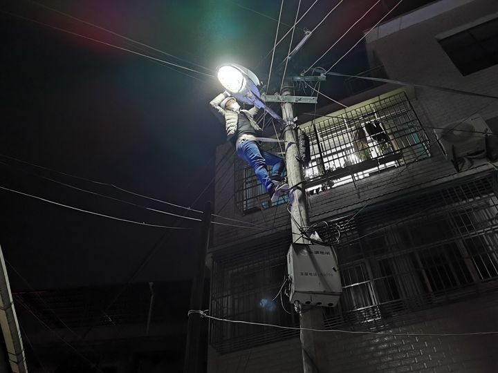 2月17日晚8時(shí)許,市投資建設(shè)服務(wù)中心路燈管理所工作人員正在州城黃泥壩李家槽組維修故障路燈。