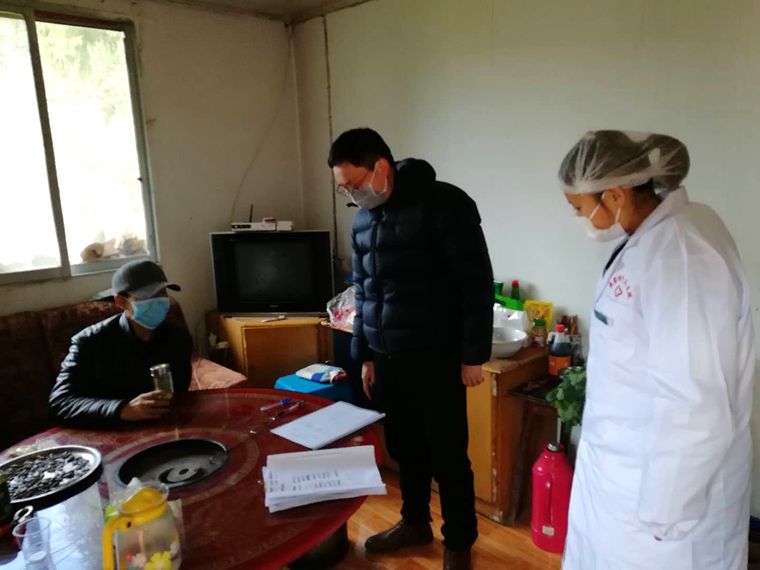 宋曉波與醫(yī)護(hù)人員一起入戶為居家隔離人員檢查
