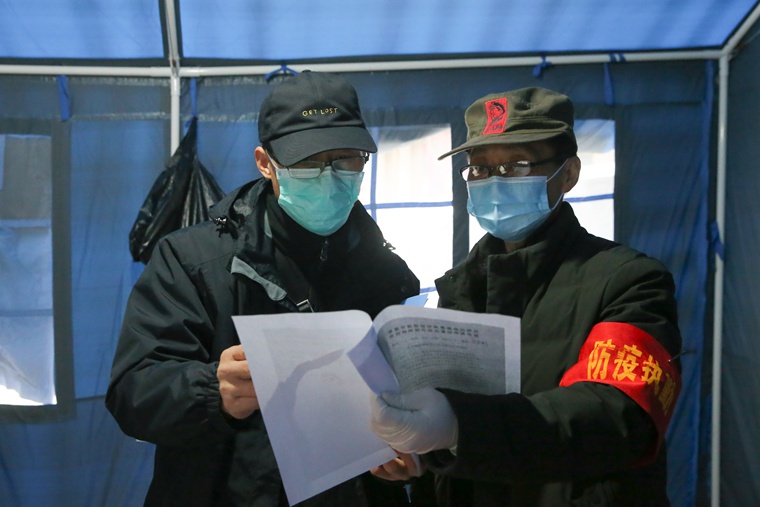 “36.5℃,體溫正常,麻煩您登個(gè)記再進(jìn)來(lái)。”3月4日晚上8點(diǎn),恩施市小渡船街道辦事處民族路稅務(wù)局宿舍區(qū)門口,市稅務(wù)局舞陽(yáng)分局黨員干部李海菠正在值夜班,為剛下晚班的居民登記。
