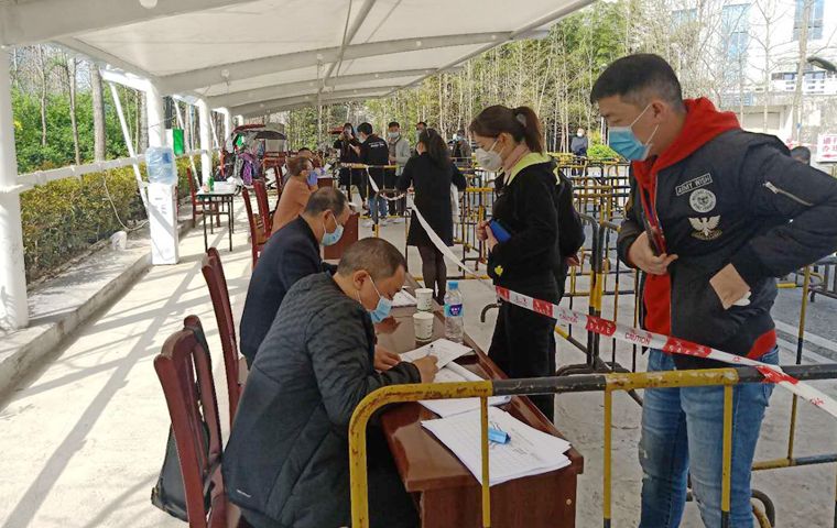 3月19日中午,恩施市舞陽壩街道辦事處工作人員正為外出人員辦理通行證,設(shè)在州文化中心停車場內(nèi)的高速公路通行證辦理點忙中有序。