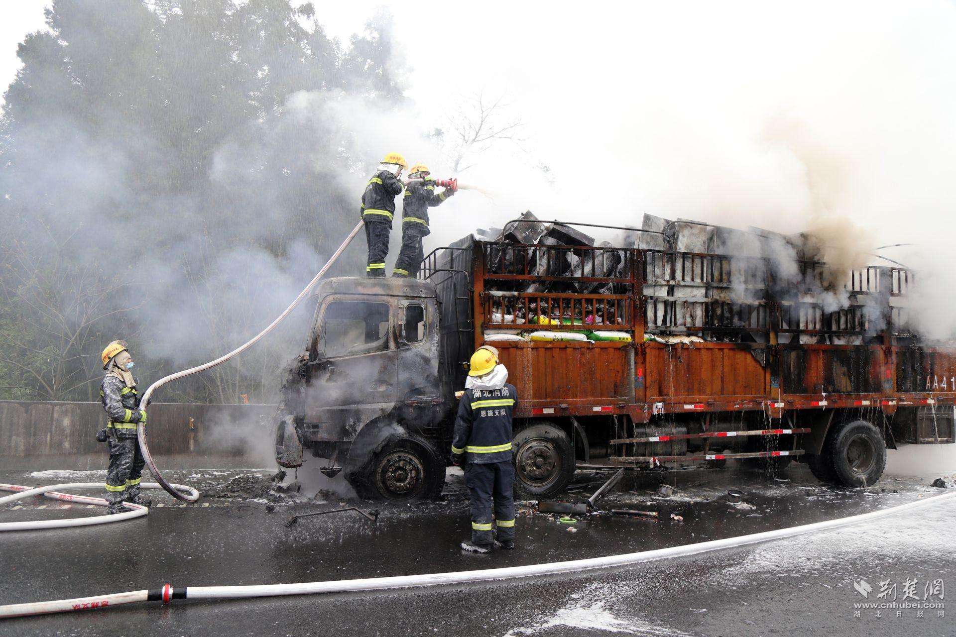 荊楚網(wǎng)客戶端—荊楚網(wǎng)消息(通訊員胡滕羽、周龍)3月30日15時許,滬渝高速恩施往利川方向1428公里處,一輛滿載百貨用品的大貨車起火,情況危急。恩施州利川市消防救援大隊接到報警后,迅速調(diào)集3輛消防車、16名消防員趕赴現(xiàn)場救援,未造成人員傷亡。