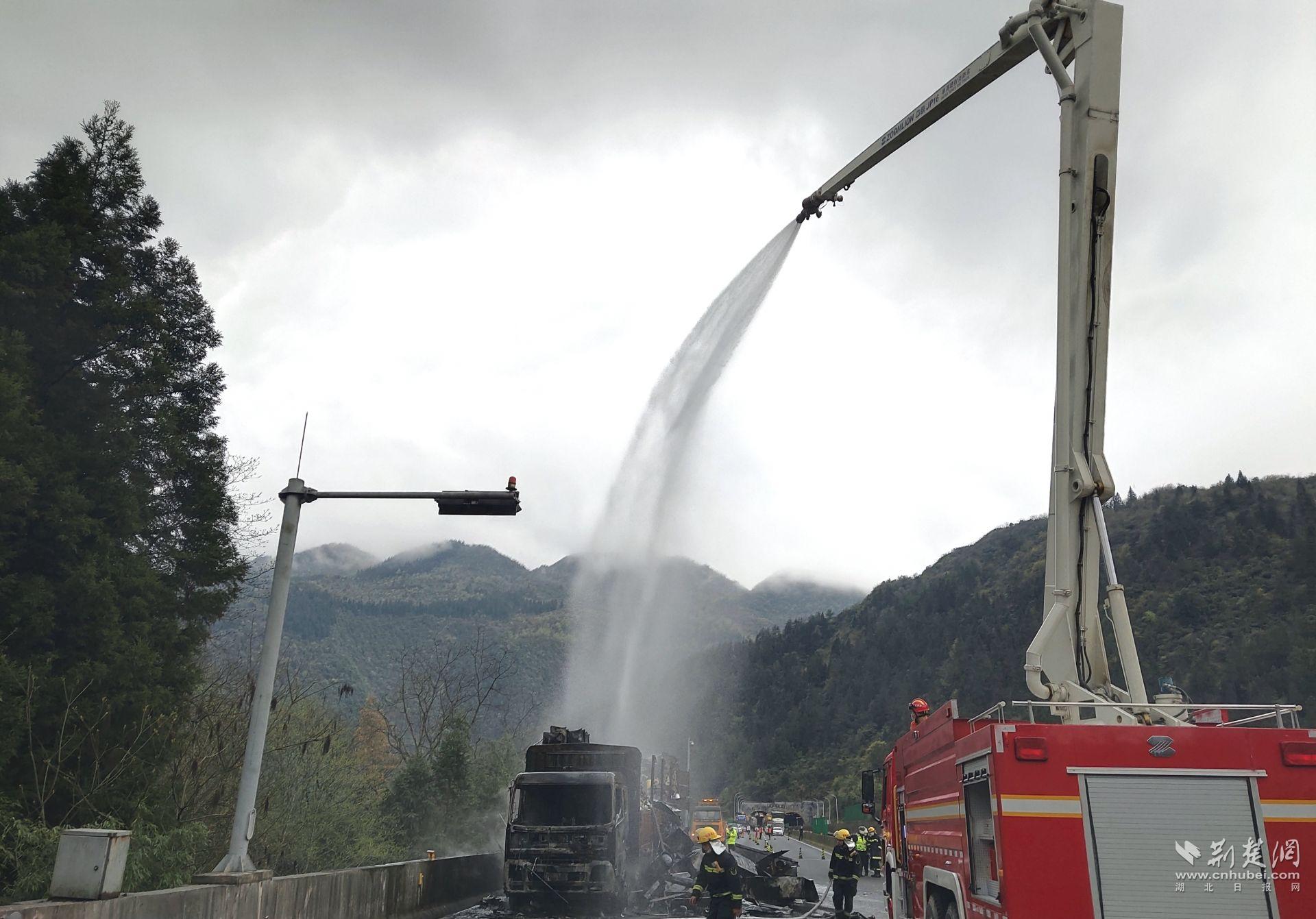 利用高噴車對貨車進行冷卻降溫。通訊員 供圖