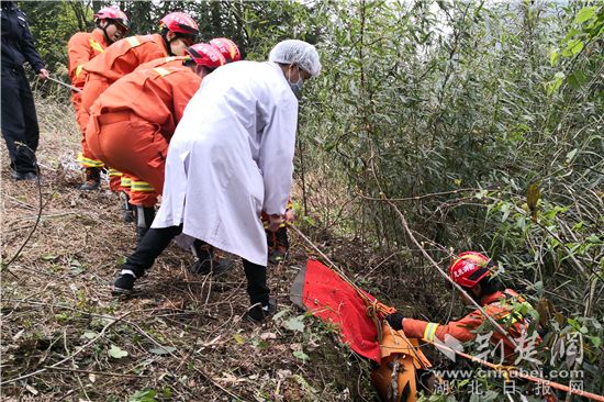事發(fā)地點(diǎn)距離利川城區(qū)60余公里,下午3點(diǎn)左右,消防救援人員到達(dá)被困人員所處山腳下。在先期到場(chǎng)的派出所民警的帶領(lǐng)下,消防救援人員攜帶多功能擔(dān)架、繩索等救援器材和醫(yī)療急救箱等,沿著陡峭的石階爬到山頂。