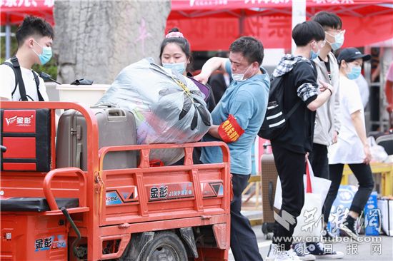 建始縣民族高級中學黨員、高三年級主任劉文華幫助返校學生搬運行李。通訊員 供圖