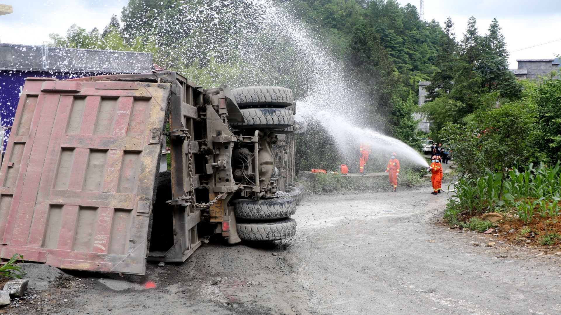 當(dāng)天上午10時35分許,咸豐縣消防救援人員接到報警求助電話,稱曲江鎮(zhèn)火車站附近一輛載有30噸砂土的大貨車發(fā)生側(cè)翻事故,司機(jī)被困。接警后,咸豐消防迅速立即組織人員前往現(xiàn)場救援。