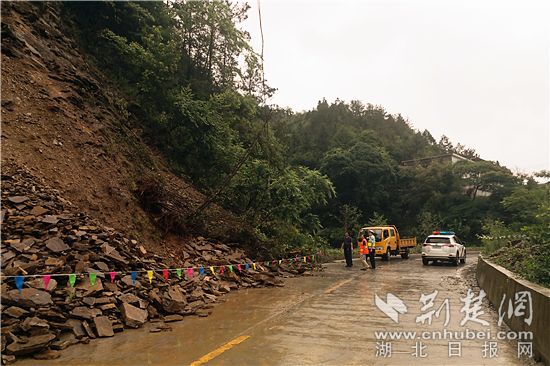 6月15日6時(shí)許,受雨勢(shì)影響,建始縣339省道小溪口路段山體發(fā)生大面積滑坡,公路旁山坡上的樹木與土石一起塌下,導(dǎo)致該路段雙向交通中斷。