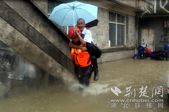 當天上午,在咸豐縣徐家壩地段,街道路面因持續(xù)暴雨被全部淹沒,水流湍急,積水有1米多深,不少居民被困家中,多為老人、小孩和婦女,且水位在不斷上漲,情況危急。