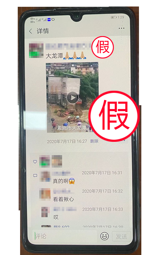 “我當(dāng)時(shí)覺得好玩,就下載了視頻,然后編輯‘恩施市大龍?zhí)丁謽影l(fā)在朋友圈?!比f某交待,該視頻是其在朋友圈發(fā)現(xiàn),但是未經(jīng)核實(shí)視頻地點(diǎn)就將視頻編輯為恩施市大龍?zhí)?。“看著揪心”“太嚇人了”……視頻一經(jīng)發(fā)布就引起朋友圈700余名好友的廣泛關(guān)注并轉(zhuǎn)發(fā)。