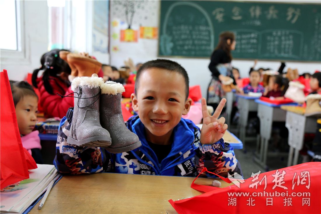 荊楚網(wǎng)客戶端—荊楚網(wǎng)消息(通訊員向繼武、譚小靜、宋吉玲)9月25日,建始高坪鎮(zhèn)望坪希望小學(xué)教室臨時(shí)布置“情滿中秋福恩鞋業(yè)愛心捐贈活動”現(xiàn)場,學(xué)生們收到了福恩鞋業(yè)贈送的新鞋,紛紛用手在胸前擺出“心”形,笑逐顏開。