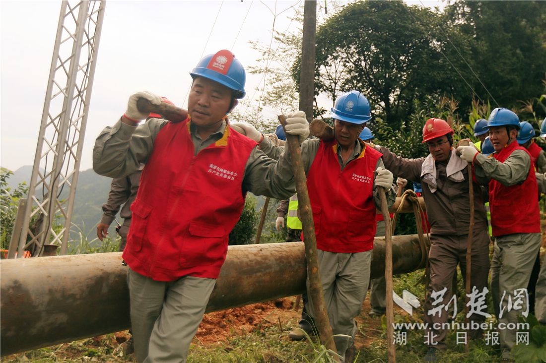 楊年奎和同事在農(nóng)網(wǎng)改造工程中施工作業(yè)。通訊員 張俊 攝