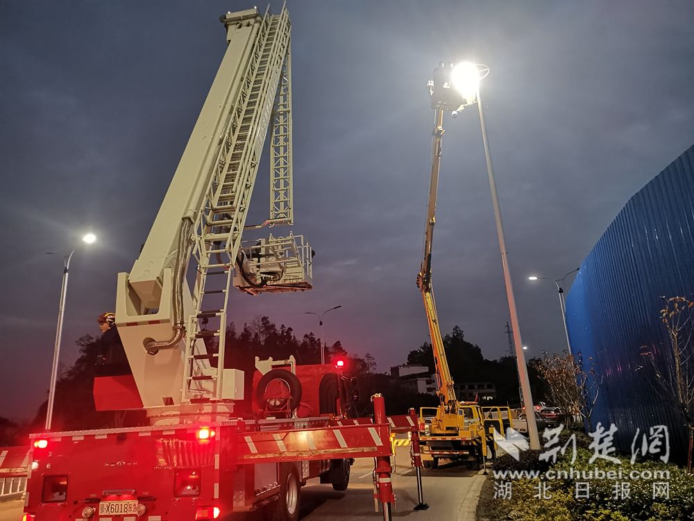 利川消防出動32米“巨無霸”救援。(通訊員 供圖)