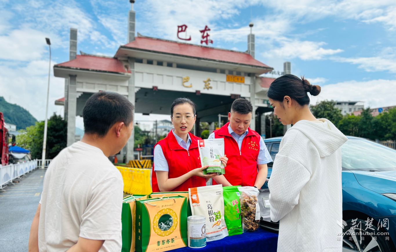巴東收費(fèi)站工作人員向司乘介紹土特產(chǎn)。向書琴 攝