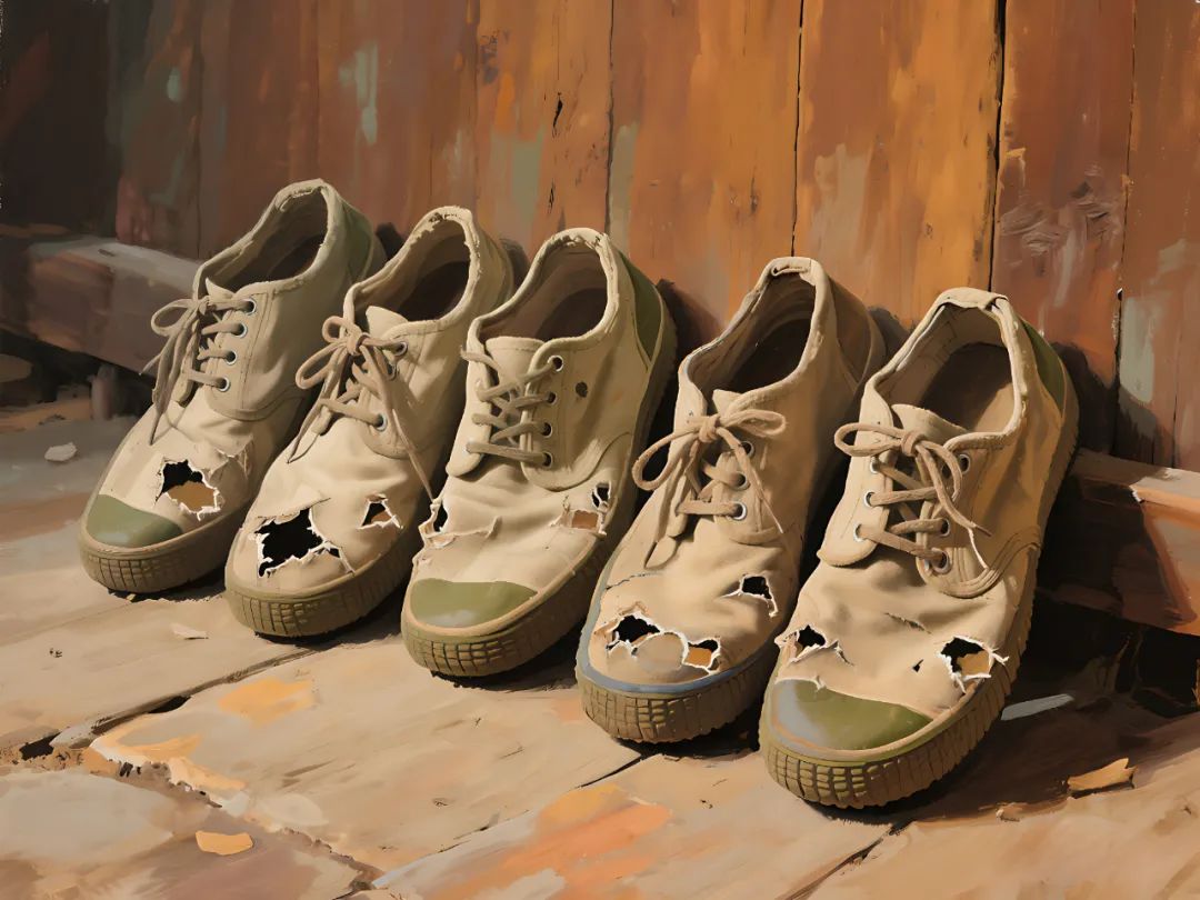 小兒子一次買(mǎi)回十幾雙鞋堆在墻角: