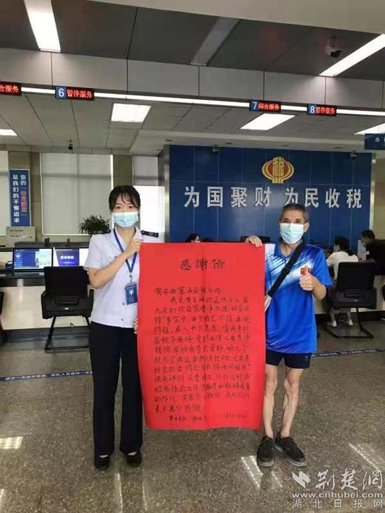 荊楚網(湖北日報網)訊(通訊員 陳利華)“你們這種滿腔熱情的工作態(tài)度和極端負責的作風實在令人欽佩,我向你們表示萬分感謝!” 9月24日一大早, 60多歲的謝國良老人給黃石市西塞山區(qū)稅務局送來一張手寫的感謝信。