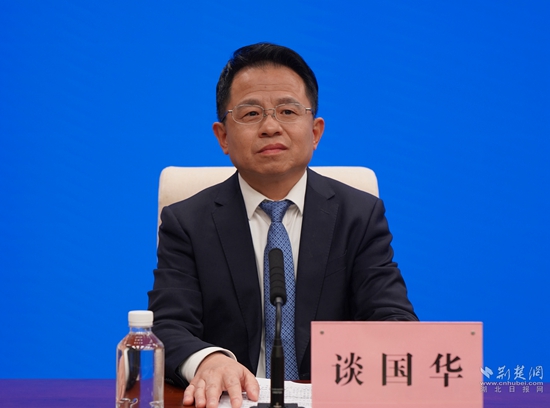 黃石市商務(wù)局黨組書記、局長(zhǎng)談國(guó)華答記者問。金康 攝