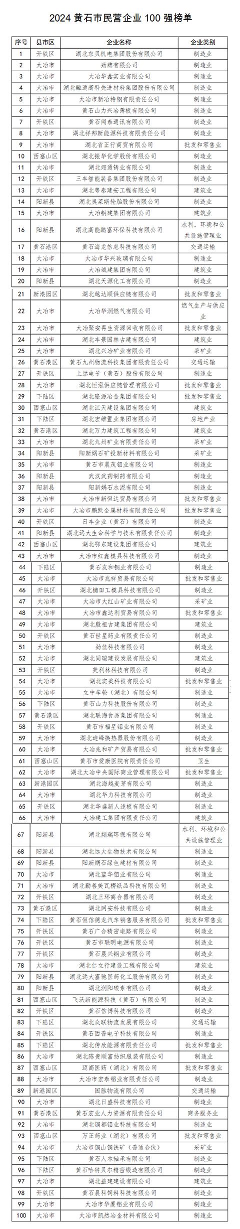 據(jù)悉,該榜單按照“湖北省民營企業(yè)100強”系列榜單排序方法,以2023年度企業(yè)營收總額(黃石地區(qū))作為主要指標(biāo),對自愿參加申報的民營企業(yè)進行排序,并征求相關(guān)部門意見建議而形成。