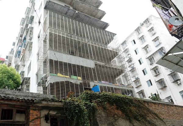 老人今年70歲,跟老伴住在茂華小區(qū)7棟單元樓上,他旁邊是6棟,與6棟、7棟一墻之隔的是順祥家園小區(qū),該小區(qū)有一棟單元樓的陽臺,正對著茂華小區(qū)這兩棟樓,且該單元樓有幾層樓的陽臺裝了不銹鋼防盜網(wǎng),防盜網(wǎng)里還圍了一層鐵皮,由于長期沒人住,鐵皮有的脫落了,有的被人為拆了半截(如圖),每當起風時,鐵皮就會發(fā)出刺耳聲響,吵得人睡不著覺。
