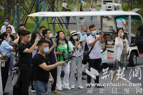 圖為參加活動的大V參觀園博園荊門極客公園。黃正恒攝