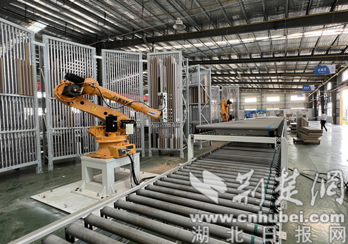 當(dāng)天下午,采訪團(tuán)第一站來到萬華禾香板業(yè)(荊門)有限責(zé)任有限公司。車間內(nèi)迎面而來的是一陣禾香氣息,伴隨著機器的轟鳴,一簇簇秸稈經(jīng)過干燥、粉碎、熱壓等12道工序,神奇地“變身”成為生態(tài)環(huán)保的新型板材?!白畲蟮奶攸c就是零甲醛,我們和歐派、索菲亞等知名品牌都有合作,市場銷售供不應(yīng)求……”萬華禾香板業(yè)(荊門)有限責(zé)任公司董事長楊志堅說。如果說秸稈代木是變廢為寶的“魔術(shù)”,那么5G智慧工廠就是科技加持下的工業(yè)表演。在伊戀全屋定制華中智造中心,四條工業(yè)4.0全自動智能化定制家具生產(chǎn)線正全速運轉(zhuǎn)。該公司借助5G技術(shù),融合互聯(lián)網(wǎng)、大數(shù)據(jù)與人工智能制造,打通企業(yè)各個流程,實現(xiàn)了從設(shè)計、生產(chǎn)到銷售各個環(huán)節(jié)的互聯(lián)互通。