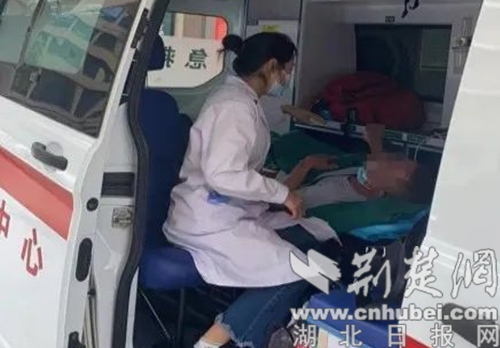 圖為醫(yī)院安排救護(hù)車(chē)和醫(yī)護(hù)人員全程護(hù)送。通訊員供圖