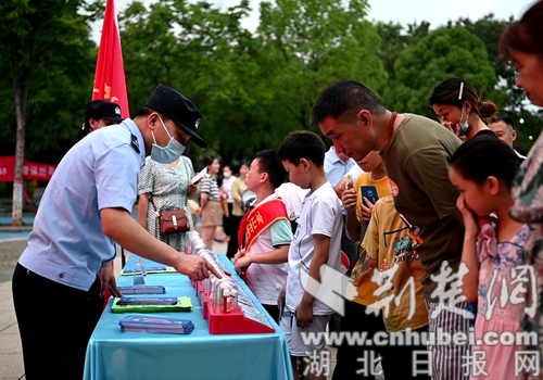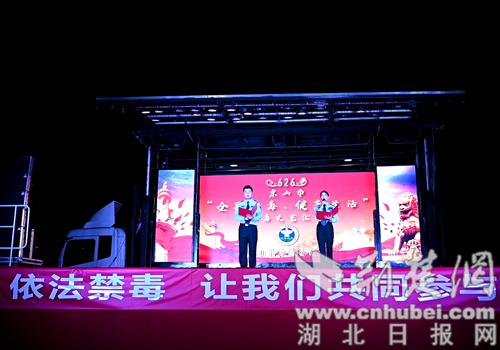 “我們要以群眾喜聞樂(lè)見(jiàn)的方式推進(jìn)禁毒宣傳,激發(fā)廣大市民朋友積極參與禁毒斗爭(zhēng)的熱情,讓人民群眾樹(shù)立自覺(jué)抵制毒品、享受健康人生的禁毒理念,從我做起、從小抓起,在全社會(huì)掀起禁毒宣傳教育熱潮!”在匯演開(kāi)始前,在京山市人民政府副市長(zhǎng)、市禁毒委員會(huì)副主任、市公安局長(zhǎng)黃華軍同志的帶領(lǐng)下,參與演職的禁毒志愿者和學(xué)生志愿者們?cè)诂F(xiàn)場(chǎng)開(kāi)展了禁毒宣傳活動(dòng),京山市公安局民輔警為過(guò)往群眾講解禁毒宣傳展牌和毒品模型,志愿者們向群眾發(fā)送宣傳單,讓每一位市民朋友都成為禁毒事業(yè)的參與者。