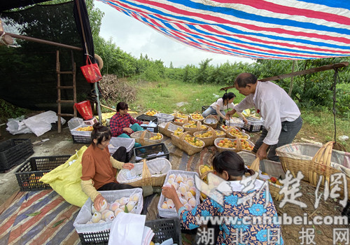 荊楚網(wǎng)(湖北日報網(wǎng))訊(通訊員 張凌霄)6頁28日,在京山市雁門口鎮(zhèn)長崗村黃桃種植基地,420畝金燦燦的黃桃迎來了豐收季。工人們正抓緊處理剛采摘下來的新鮮黃桃,分揀、打包、裝箱,整個環(huán)節(jié)有條不紊。