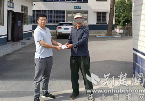 圖為民警將被騙的現(xiàn)金交給受害人。通訊員供圖