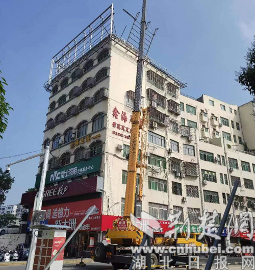 經(jīng)現(xiàn)場(chǎng)勘查,該大型戶外廣告設(shè)置于虎牙關(guān)大道97號(hào)樓頂,已過審批期限。由于該戶外廣告整體為鋼質(zhì)結(jié)構(gòu),高度寬度超限,且繞樓頂三面設(shè)置,呈U形狀,重量過重導(dǎo)致樓頂橫梁、墻面出現(xiàn)裂紋,存在較大安全隱患。對(duì)此,市城管執(zhí)法督察支隊(duì)于6月14日督辦掇刀城管執(zhí)法大隊(duì)、掇刀石街道綜合執(zhí)法中心向該廣告所屬單位及房屋所有人等相關(guān)當(dāng)事人下達(dá)《限期拆除通知書》,責(zé)令其在7日內(nèi)自行拆除。