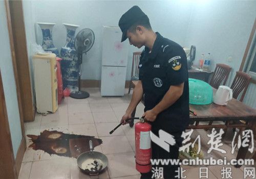 7月19日晚21時(shí),應(yīng)急處突大隊(duì)輔警張瓏珹、薛建鋒、鄧俊凱在掇刀漢正街周邊開展夜巡。一名群眾向他們反映,稱看見一居民樓內(nèi)冒出濃煙并帶有火光,三人立即趕往現(xiàn)場查看,并將情況報(bào)告值班領(lǐng)導(dǎo)。張瓏珹、鄧俊凱敲開老人家的門幫助正在滅火的老人打開窗戶通風(fēng),薛建鋒迅速到附近網(wǎng)吧拿來滅火器,將正在燃燒的油鍋撲滅。隨即,三人對(duì)老人屋內(nèi)進(jìn)行了隱患排查,確認(rèn)安全后離開。