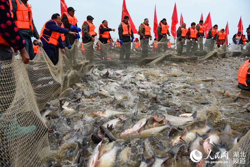 魚糕節(jié)開幕的前一天下午,在荊州市公安縣毛家港鎮(zhèn)的玉湖湖畔還舉行了玉湖開捕儀式。吸引了數(shù)千名游客前來體驗(yàn)“漁樂無窮”,提前感受幸福的年味。200名開捕漁工集中在玉湖進(jìn)行捕撈,再現(xiàn)趕魚、收網(wǎng)、起魚、賣魚的豐收?qǐng)鼍啊?/p>